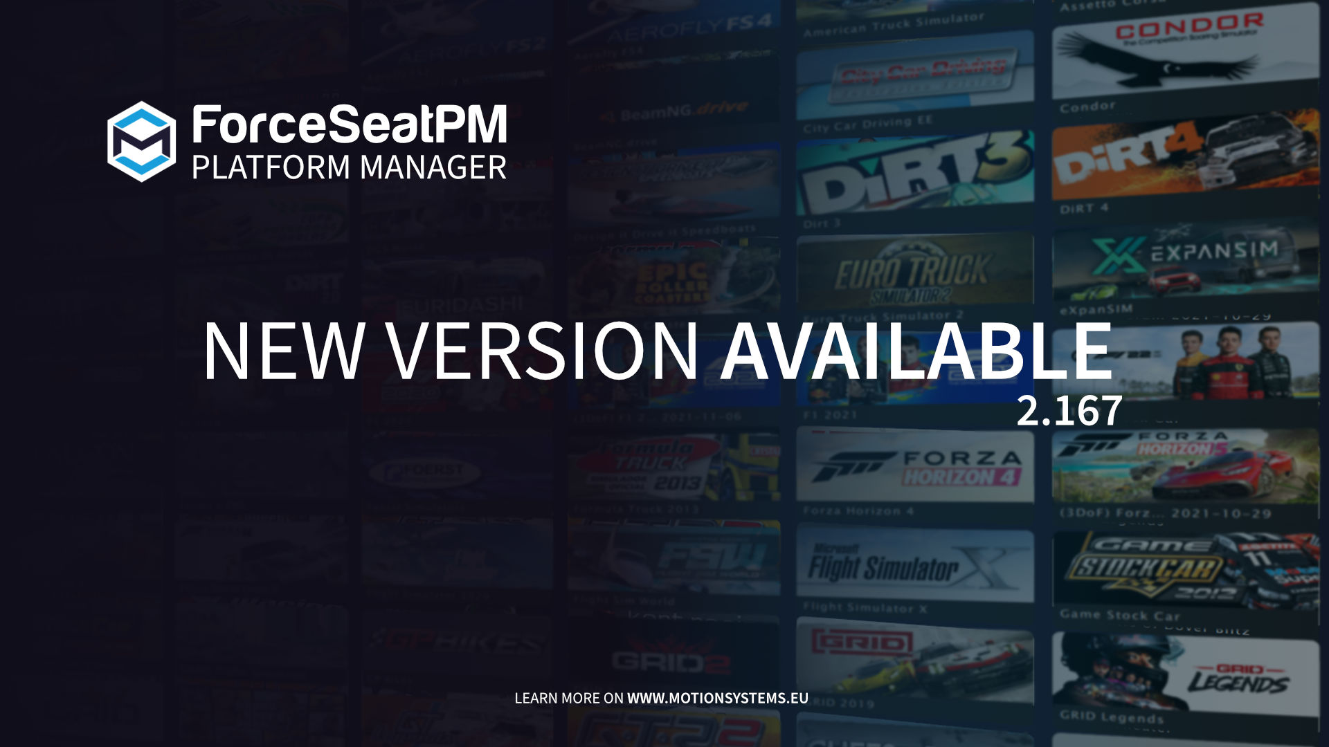 A new version of the ForceSeatPM 2.167, has recently been released, bringing a host of fixes and improvements. These updates are sure to delight flight and racing simulation enthusiasts, as well as professional users.